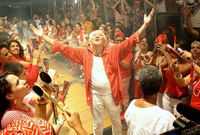 Esse candidato era do partido do Paulo Maluf. Outra coisa: o capitalismo em si é totalmente corrupto, a maior corrupção que existe é a desigualdade imensa, a maior que já houve na história da humanidade, por conta do aparecimento, exatamente, da especulação financeira. Agora, o capitalismo financeiro tem o capitalismo agrário, o industrial, a televisão, tem tudo. E produziu o maior momento de desigualdade do país. Eu estou veemente nessa luta pela democracia. Caetano nos conclamou a nós, artistas, que estamos nessa primavera cultural, pra gente tomar essa posição. Estou com Caetano, com Haddad, com os sem teto, com os sem terra, com todos os que estão apoiando esse movimento contra o fascismo. As pessoas estão dopadas, drogadas por um mito. Um mito!… Um mito não é nada. É uma boneca de papel. Sopra e ele desaparece. Estou muito alegre pela felicidade guerreira de poder ainda lutar contra isso.”