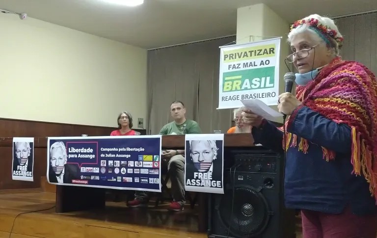 Nas palavras da diretora cultural que abriu o ato: “a condenação de Assange representa uma ameaça de dimensões incalculáveis, tanto para nós jornalistas quanto para os cidadãos que presam pelo direito à informação”. Já Wadih Damous, ex-deputado federal pelo Rio de Janeiro (PT) e ex-presidente da Ordem dos Advogados no Rio falou da importância das denúncias realizadas pelo fundador da Wikileaks que expuseram informações de extrema importância e negadas ao grande público: “Esta campanha pela liberdade de Assange é algo que se impõe a todos nós. A quem, ao longo dos tempos, luta pela democratização da informação, que luta por liberdade de imprensa, por liberdade democrática. Assange prestou um serviço extraordinário aos povos de todo o mundo. Ele atuou em favor da humanidade. Sabemos o que significa esta extradição para os EUA: a morte física dele. Lá ele é tido como inimigo. Eu repito aqui o que disse o presidente Lula: Assange é o herói dos nossos tempos”.