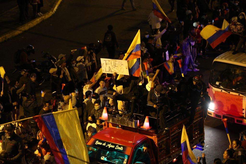 Manifestantes tratan de entrar en las instalaciones de la Asamblea Nacional en Quito, el 23 de junio de 2022. MARTIN BERNETTI (AFP)Indígenas y manifestantes que forman parte de las protestas contra el Gobierno del presidente Guillermo Lasso, a su llegada a Quito el lunes. JOSÉ JÁCOME (EFE)