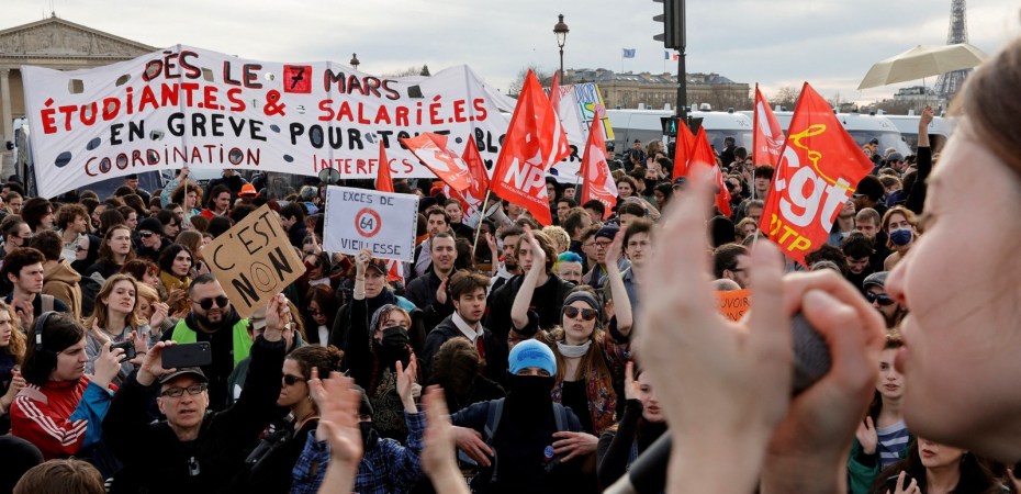 Há dois meses, uma vez por semana, os sindicatos realizam massivas manifestações contra a reforma da previdência que pretende ampliar de 42 para 43 anos o tempo de contribuição e elevar para 64 anos a idade mínima para aposentadoria.